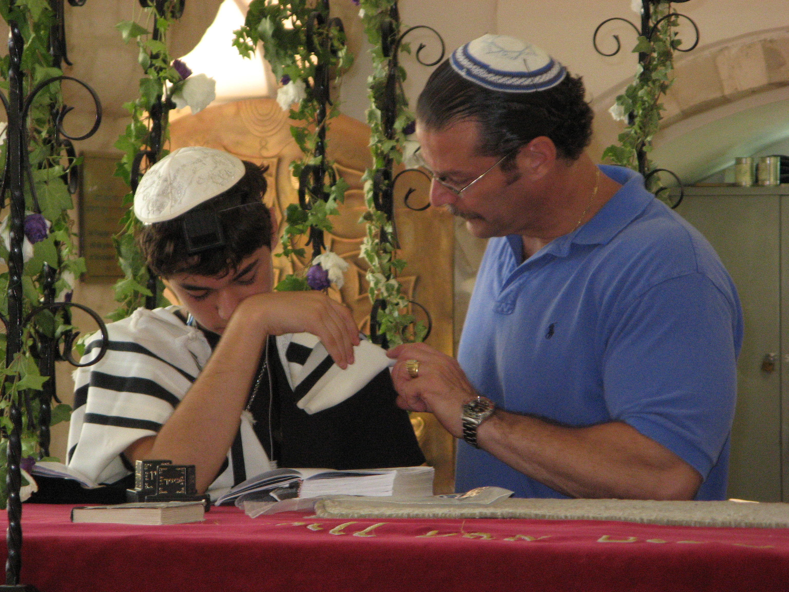 Gebetsschal) und Tfillin (תפילין, Gebetsriemen)
